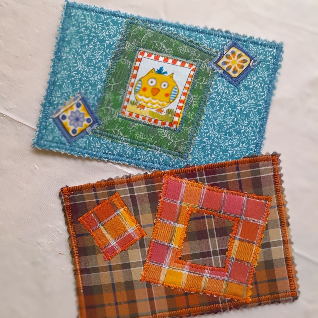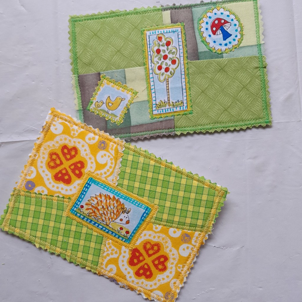 I am intrigued by them, as the two bright blue/green ones in no way reflect my aesthetic sensibility. However, presented with a pile a fabric scraps on a table, this is what I chose to do. All right, I thought the nursery prints, the little animals, were cute and they look good on the bright blue and green. I feel like I’ve been bounced out of some sort of aesthetic rut. And what on earth is wrong with bright blue and green?