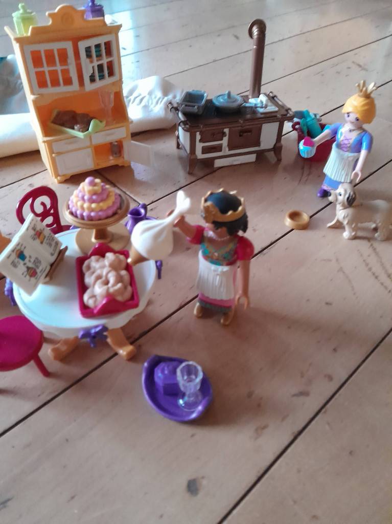 I used to have quite a collection of PlayMobil: the castle and all manner of Medieval Peoples with accoutrements. Alas, they do not do the castle anymore, but I’ll bet it comes around again. Just have to keep an eye out. And I think the PlayMobil people are much more expressive and attractive than the Lego people. I was thinking I will set up little scenes on the desk … to lighten my mood during the day. I just sent away for the Viking Warrior Woman. Not sure how I can work her into the Country Kitchen … something to think about.